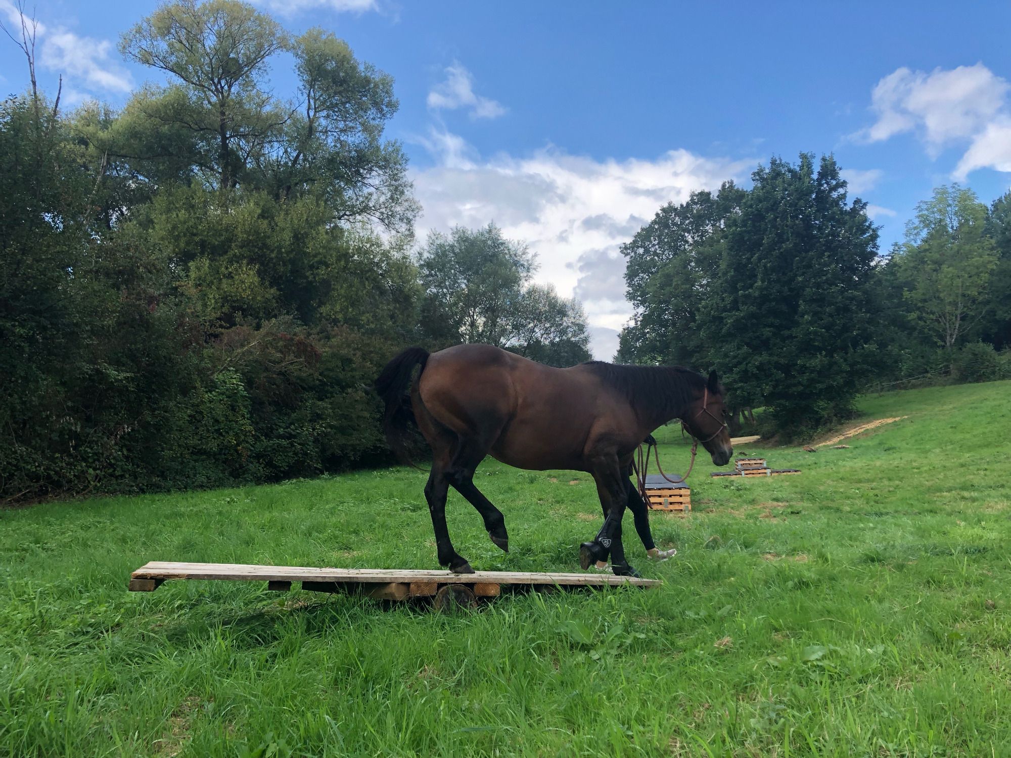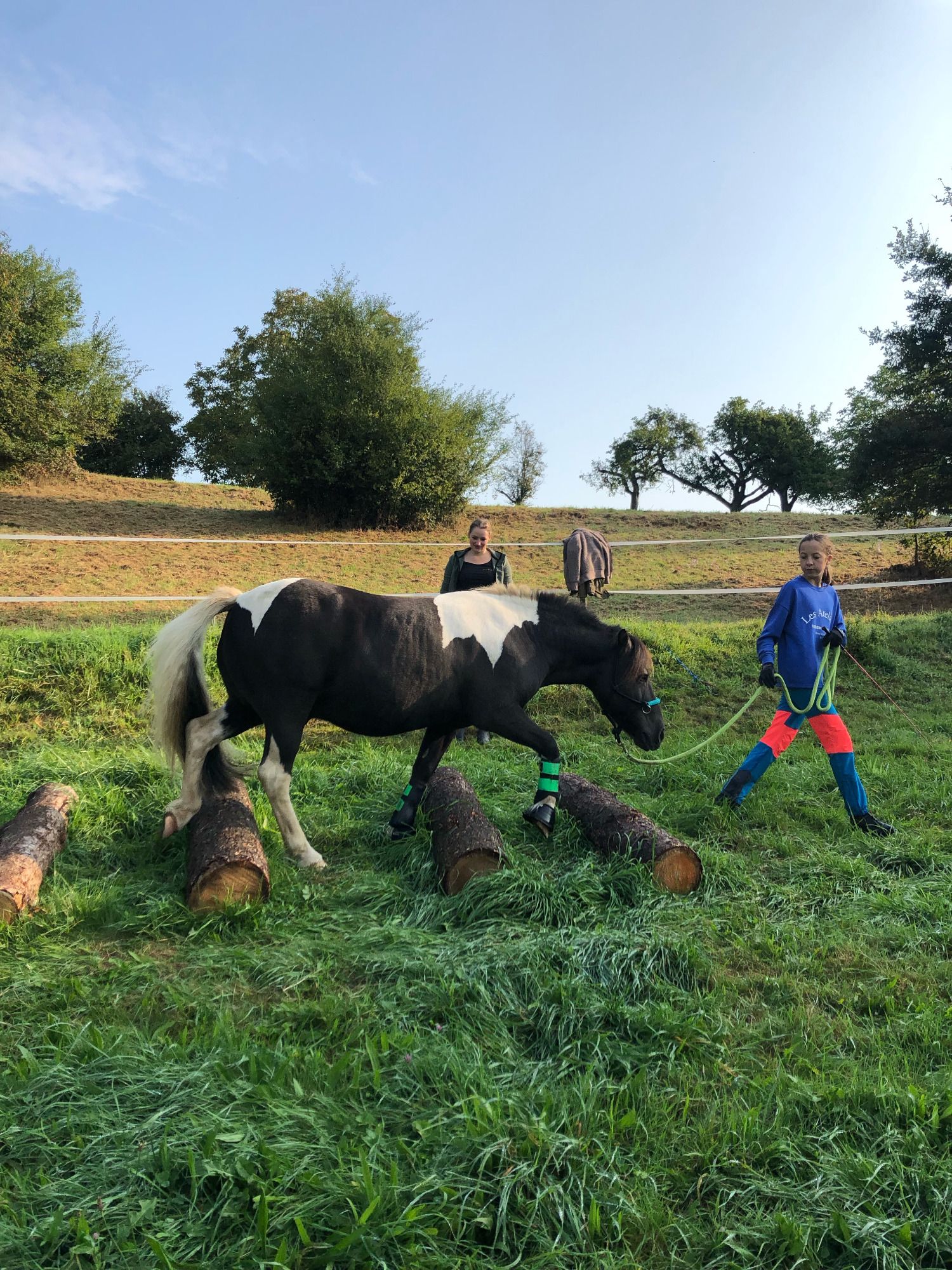 Die beiden Trail-Neulinge erobern die Hindernisse. Motivationscoach Stracciatella gibt Rückendeckung.